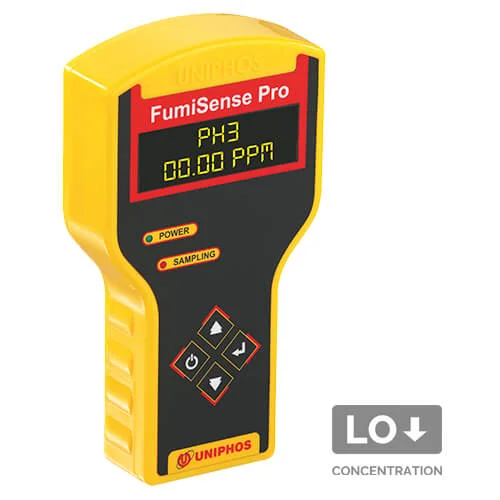 A portable programmable fumigation gas monitor for detection and continuous monitoring of PH3 during fumigation.