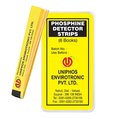 Uniphos PH3 Gas Detector Strips are paper strips impregnated with sensing chemicals for semi-quantitative measurement of phosphine gas concentrations.